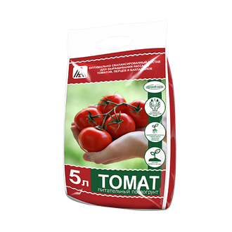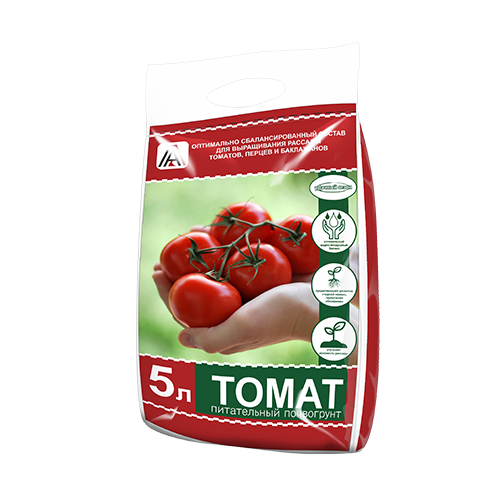 Грунт «Томат» - готовый нейтральный почвогрунт на основе высокогумусного лугового чернозема, торфа и компоста, с высоким содержанием природных гуматов калия и фосфатов. Предназначен для выращивания рассады томатов, перцев, баклажанов и для подкормки плодоносящих растений.