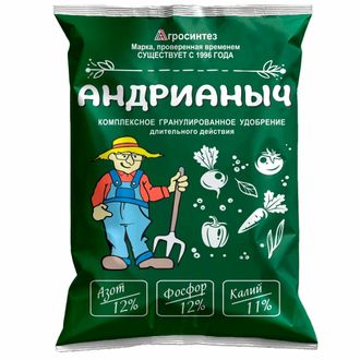 Андрианыч - комплексное универсальное удобрение, содержащее сбалансированный набор питательных веществ, необходимых для полноценного роста и развития растений. Способствует раскислению почвы.