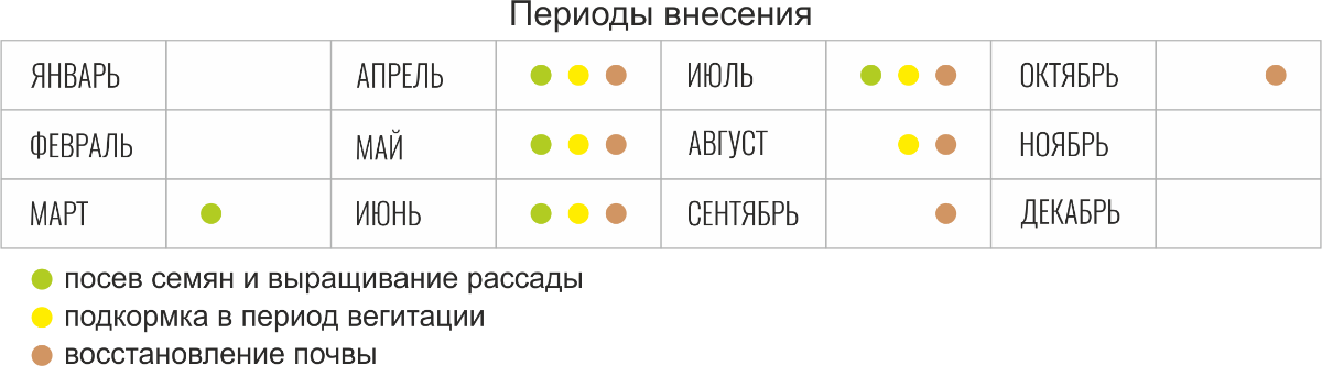 Назначение: Применяется во всех почвенно-климатических зонах как источник основных питательных веществ для любых садово-огородных культур. Особенно эффективно на кислых почвах с нарушенной структурой, заиливающихся, склонных к образованию почвенной корки после поливов и дождей.