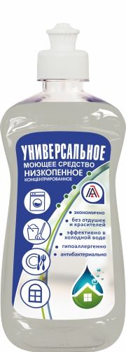 Универсальное моющее средство «Низкопенное концентрированное» предназначено для ежедневного ухода за любыми моющимися поверхностями: для мытья посуды, кухонной мебели, пола, стен, стекол, зеркал, любых синтетических, виниловых, деревянных, керамических и ламинированных покрытий.