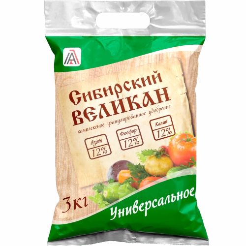 Серия комплексных удобрений «Сибирский великан» состоит из 11 марок, содержащих сбалансированный состав основных элементов питания, микроэлементов и органических веществ, необходимых для определенного вида культур (помидор, лук, чеснок, корнеплод, ягода, газон, картофель, огурец, перец, баклажан, капуста, фруктовые деревья, ягодные кустарники, бахчевые культуры, вьющиеся кустарники).